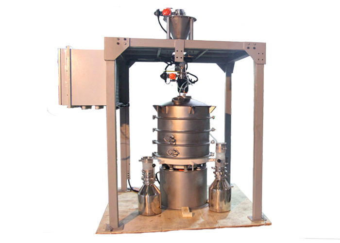 3D打印材料氣體超聲波振動篩配有氣體保護(hù)裝置,與材料接觸部分采用304材質(zhì),采用立式振動電機(jī)作為激振源。垂直和傾斜的三維運(yùn)動,然后將此運(yùn)動傳遞到篩面上,大于篩孔尺寸的物料留在篩面上并從粗料排料口排出,小于篩孔尺寸的物料 落入下層。,根據(jù)振動篩的設(shè)計,可以配置1-5層篩網(wǎng)來實現(xiàn)粒度分級。