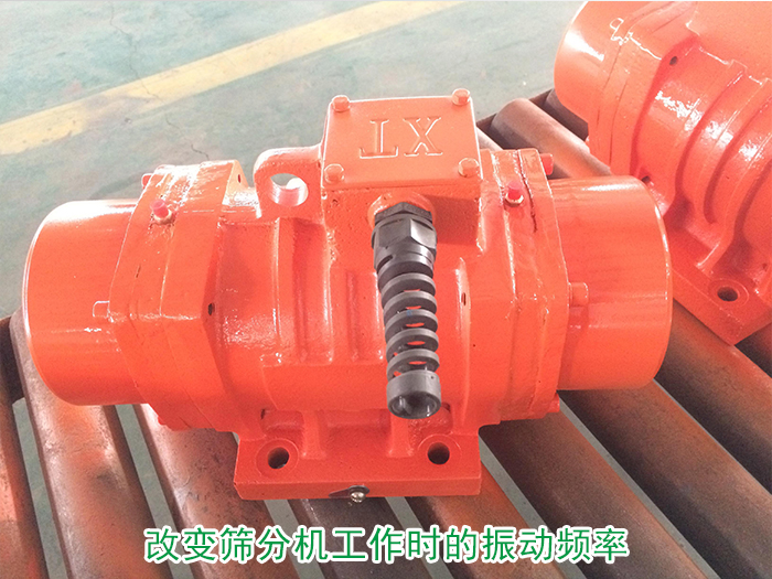 可改變篩分機(jī)工作時(shí)的振動(dòng)頻率與其自身固有的振動(dòng)頻率為不一致的頻率,可通過振動(dòng)電機(jī)改變篩分機(jī)的振動(dòng)頻率從而達(dá)到防止共振的目的。(可調(diào)節(jié)電機(jī)兩端的偏心塊夾角來改動(dòng)激振力的大小,夾角小,激振力變大,振幅變大;反之,夾角變大,激振力變小,振幅變小)。
